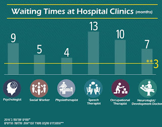 - Misallocation of funds: The Ministry of Health does not allocate a budget for therapy hours in special education day-care centers to the local authorities. So the local authorities in turn don’t allocate a therapies-specific budget to those special ed day-care centers. The result is that portion of the overall budget allocated from the local authority to the centers which is supposed in some general way to be applied to therapies for special-needs children ends up being channeled to other uses such as teaching hours. So what happens to the needs of the children who were supposed to receive funded care? A good question. You can probably guess the answer.